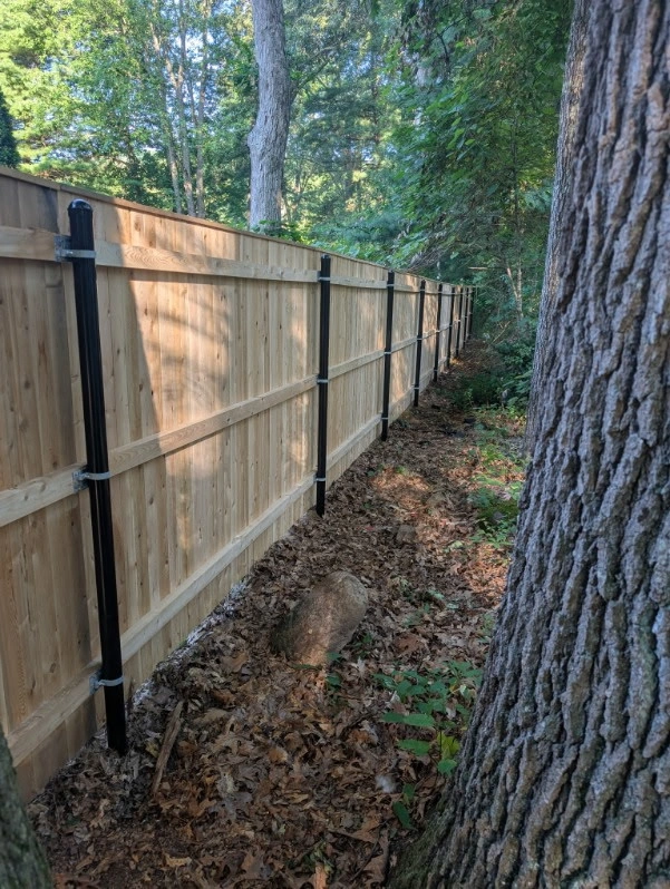 A cedar or wood fence has great durability, natural beauty, and the ability to provide privacy and security. Cedar, in particular, is prized for its natural resistance to rot, insects, and decay, making it a low-maintenance option for homeowners. Quality construction is key: sturdy posts, properly treated wood, and precise installation ensure the fence remains straight and strong for years. Additionally, a well-designed wood fence complements the landscape and enhances curb appeal with its warm, timeless look.